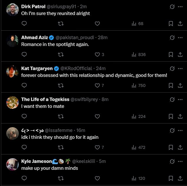 The cozy appearance sparked reconciliation rumors among some fan reaction on X
