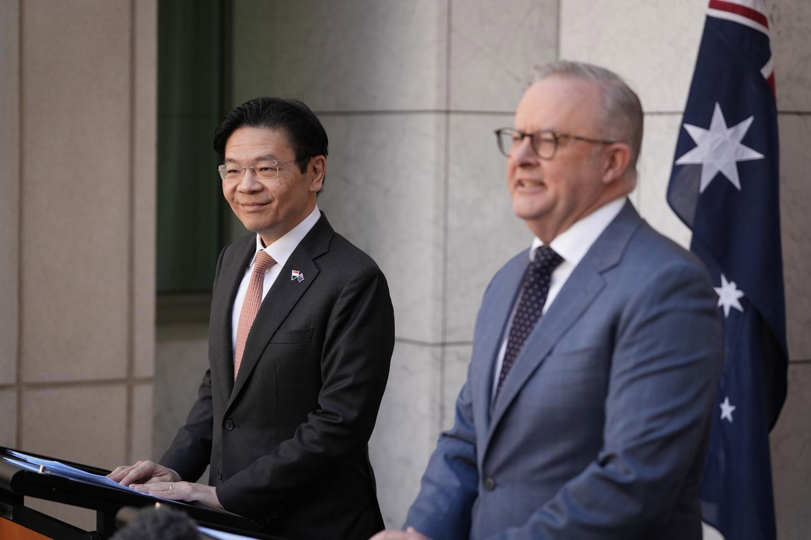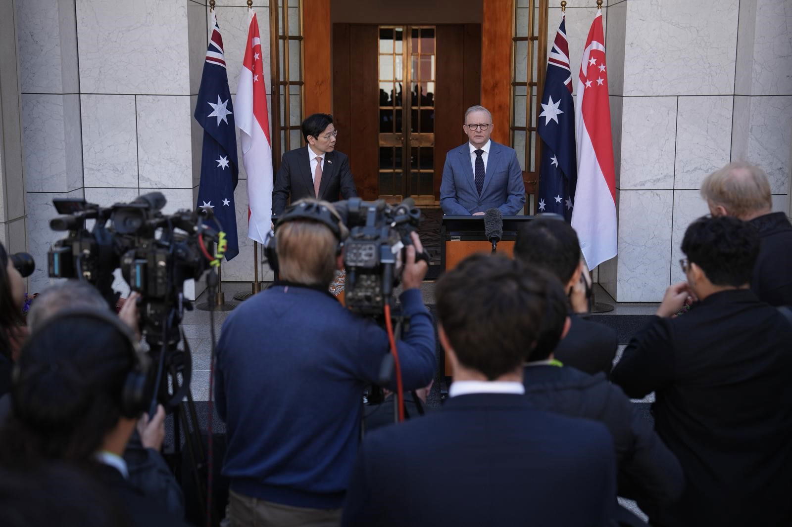 Prime Minister Anthony Albanese is due to step up with Singapore’s Prime Minister Lawrence Wong shortly.