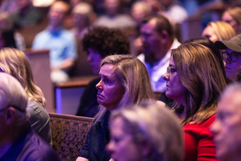 Attendees of a Turning Point USA event listen to activist Chloe Cole on Oct. 7, 2025, at Birchman Baptist Church in Fort Worth. (Maria Crane | Fort Worth Report/CatchLight Local/Report for America)