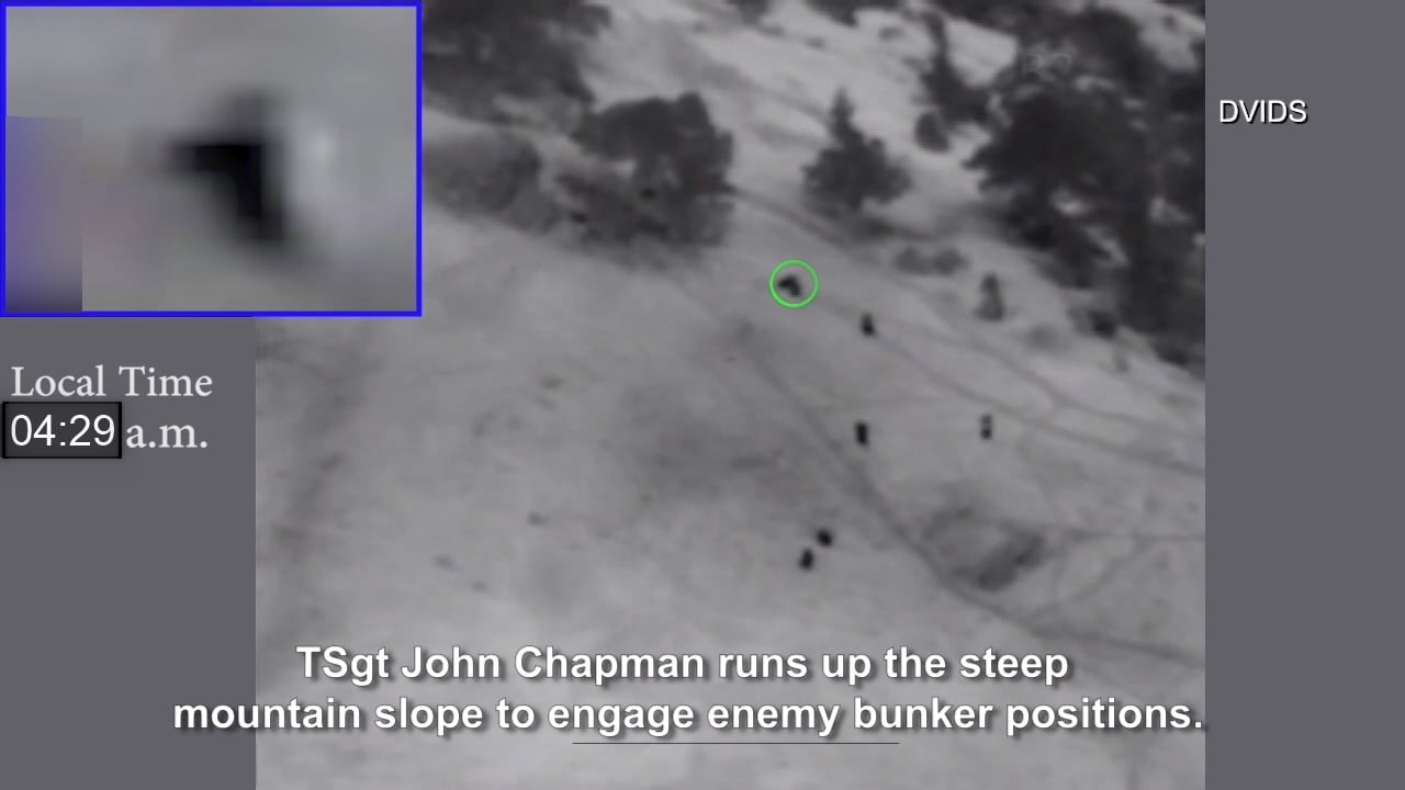 MQ-1 Predator drone footage showed Chapman’s final moments, during which he killed at least one insurgent in hand-to-hand combat, as the enemy swarmed his position and began firing on another helicopter that was arriving with a quick-reaction force.