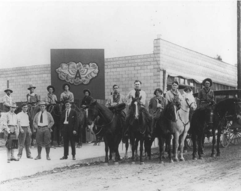 Actors in front of the Flying A Studios in La Mesa back in the day. (Photo courtesy of La Mesa Historical Society)