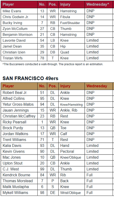 The Godwin “fibula” problem is concerning. Is it related to his reconstructed ankle? The Bucs have not offered details.