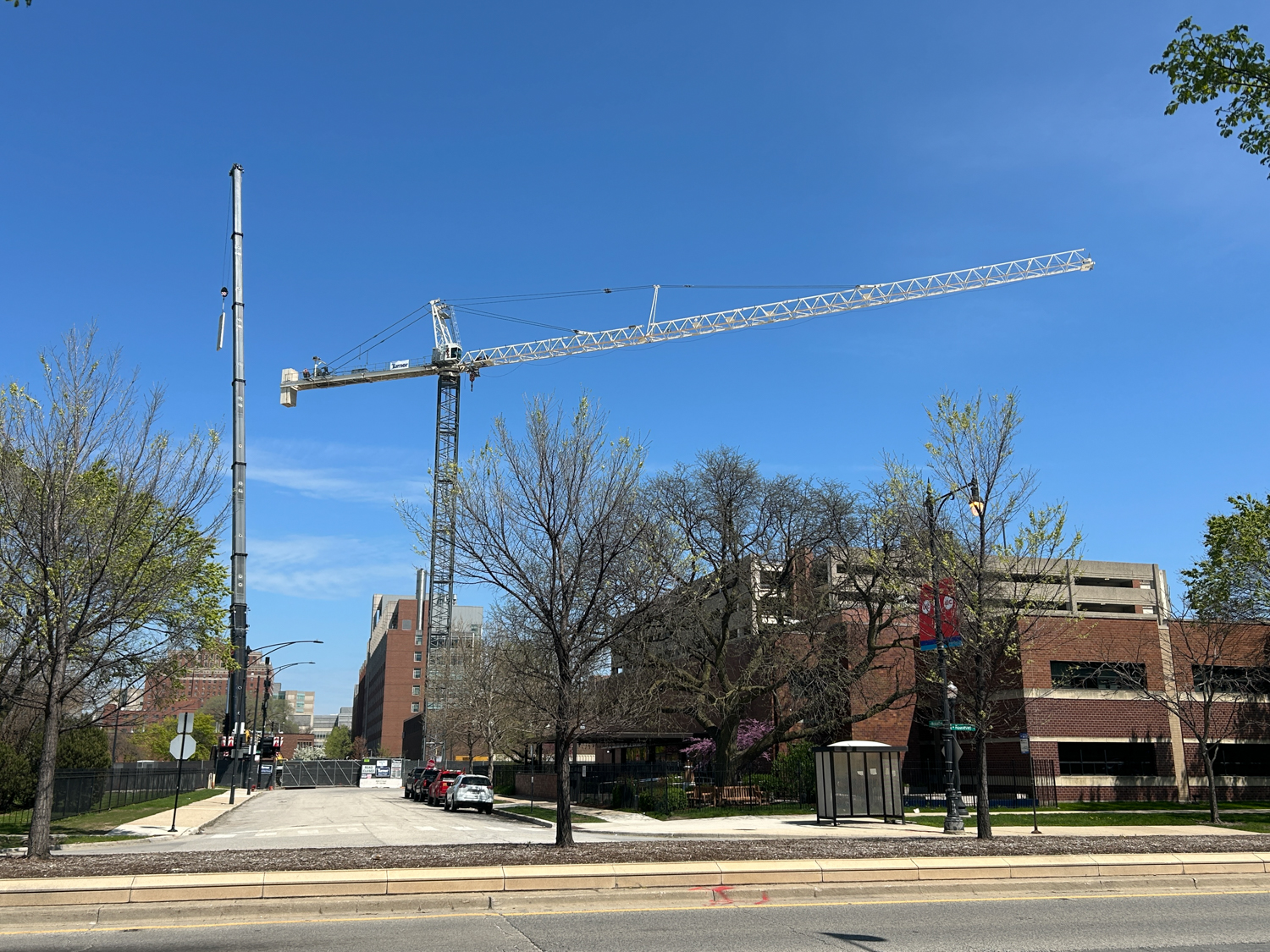 Chicago currently has nine tower cranes in the air; 1221 West Washington will be the tenth. The long-tenured rig at the Obama Presidential Center was taken down late last month. Permits have been issued for 410 North Elizabeth and 1630 South Wabash, but those machines have yet to be erected.