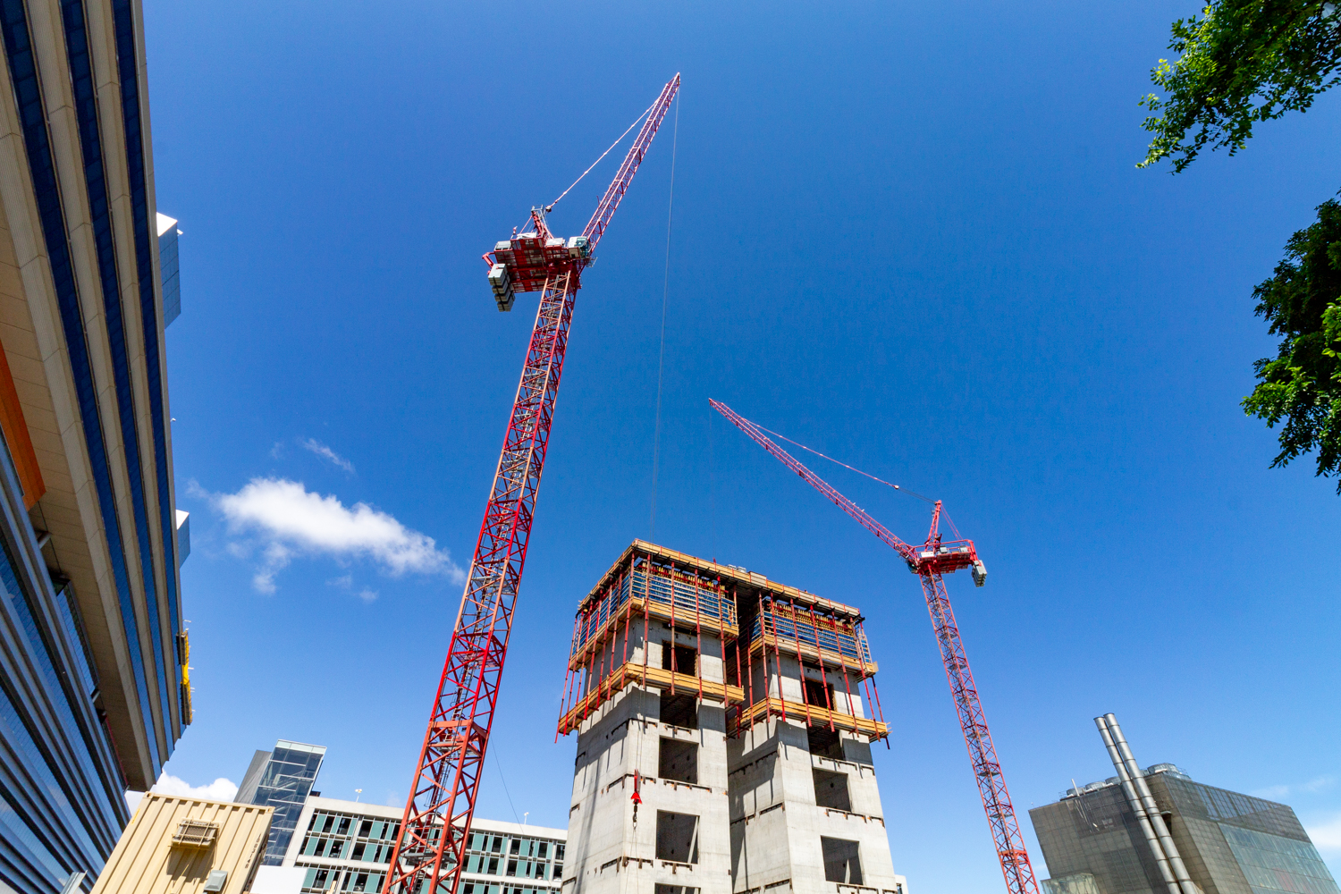 As the concrete contractor, McHugh Concrete is the master of the crane, operating it for general contractor Focus, who is also the residential tower’s developer. YIMBY visited the site in late September to view excavation work. The 19-story, 287-unit apartment tower Focus is erecting with DAC Developments and Melrose Ascension Capital came back to life with a full permit back in May, two and a half years after receiving its foundation permit in December 2022.