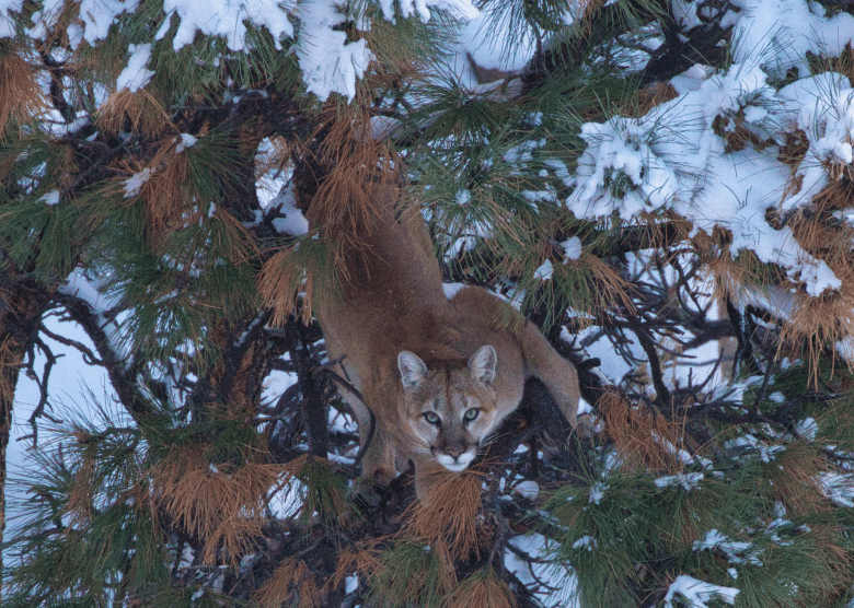 The treed mountain lion pictured is one of 26 cats that were tracked by Wyoming researchers from 2019 to 2023 in the Laramie Mountain area. (Justin Binfet/Wyoming Game and Fish Department)
