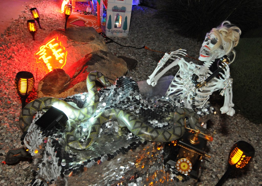 One of the many skeletons at the Taylor Swift Halloween House in Phoenix.