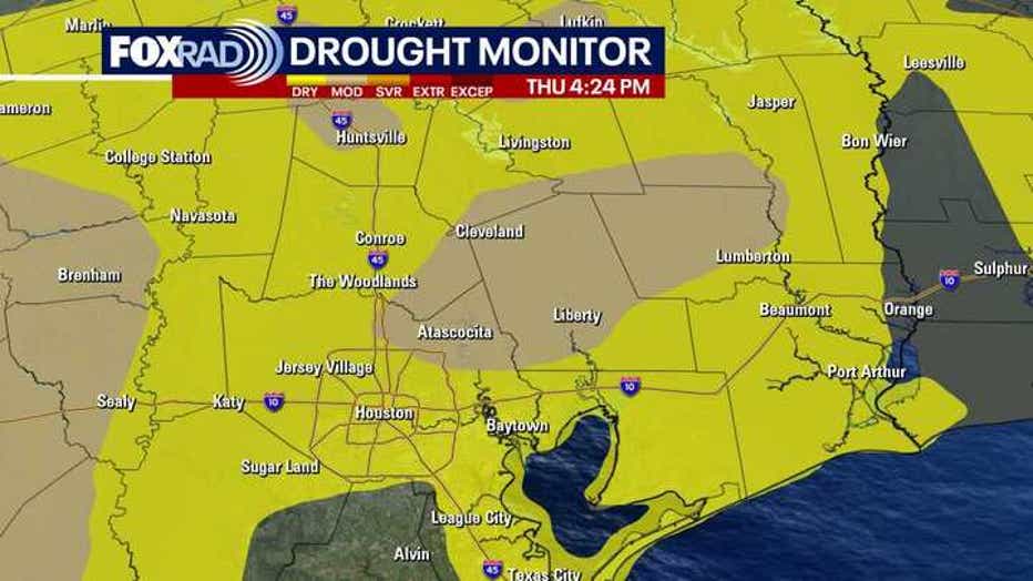 Moderate drought conditions are now present in parts of Harris, Montgomery, and Liberty counties.