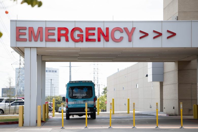 An ambulance sits outside of the Emergency Room entrance at Methodist Stone Oak Hospital in 2021. Credit: Bria Woods / San Antonio Report