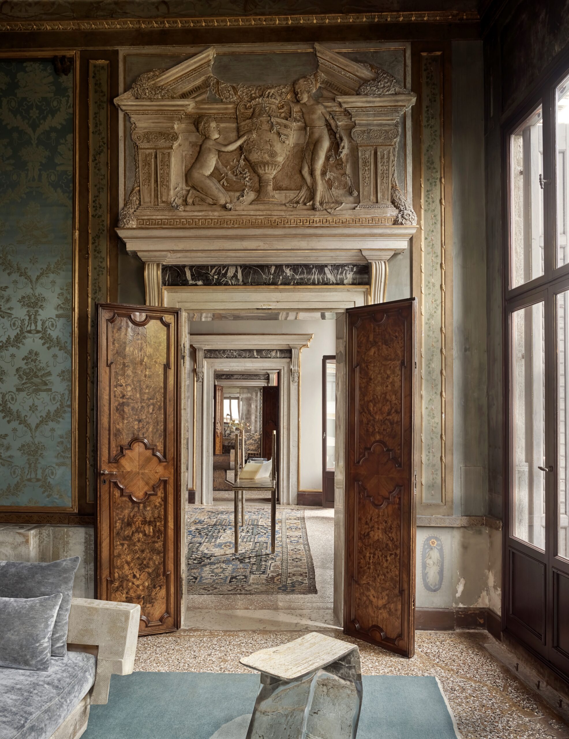 Parham House in Sussex, Rousham in Oxfordshire, Villa Kérylos on the French Riviera, Charleston in East Sussex, the Doria Pamphilj in Rome, and Museo Fortuny in Venice, each with its own story and atmosphere, endlessly inspiring.