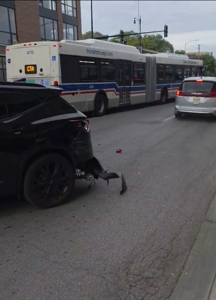 Screenshot of damage to a van occurred when a van driven by Border Patrol agents drove off after detaining at least two people, including a WGN employee, in Lincoln Square on Oct. 10, 2025. Credit: Provided