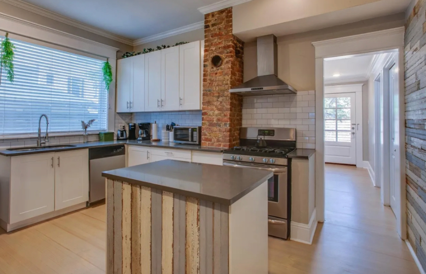 You can see his construction know-how came in handy once he landed in Bishop Arts. After renovating his first home, he set his sights on this 2,960-square-foot, four-bedroom, three-bath historic duplex. He moved in and renovated while living there.