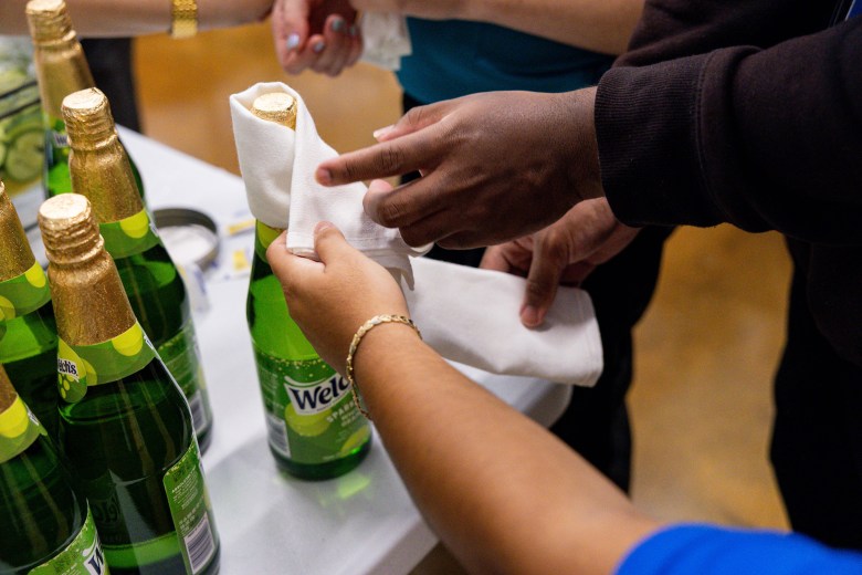 Employ 210 participants demonstrate food service tasks like beverage serving techniques during a job experience event for neurodiverse individuals at the ZerNona Black Multigenerational Community Center on Wednesday, Oct. 8, 2025. Credit: Amber Esparza / San Antonio Report