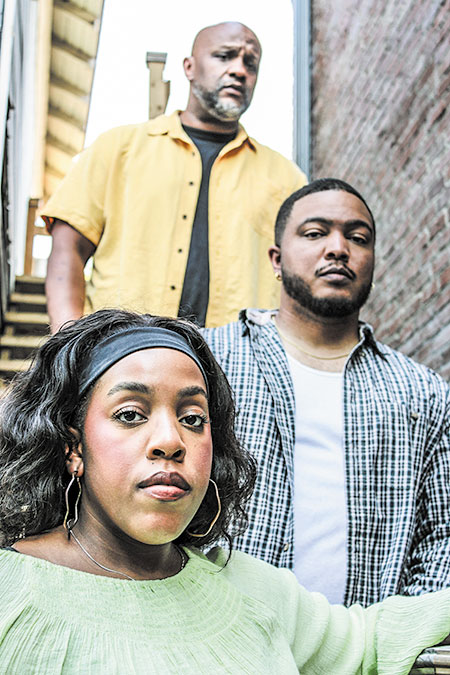 Soul Rep Theatre’s production of King Hedley II features Jamal Sterling (top), Brian Gipson (center) and Olivia Lewis.