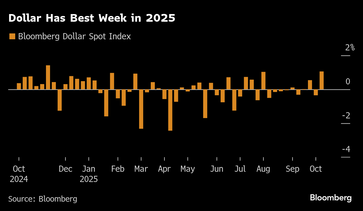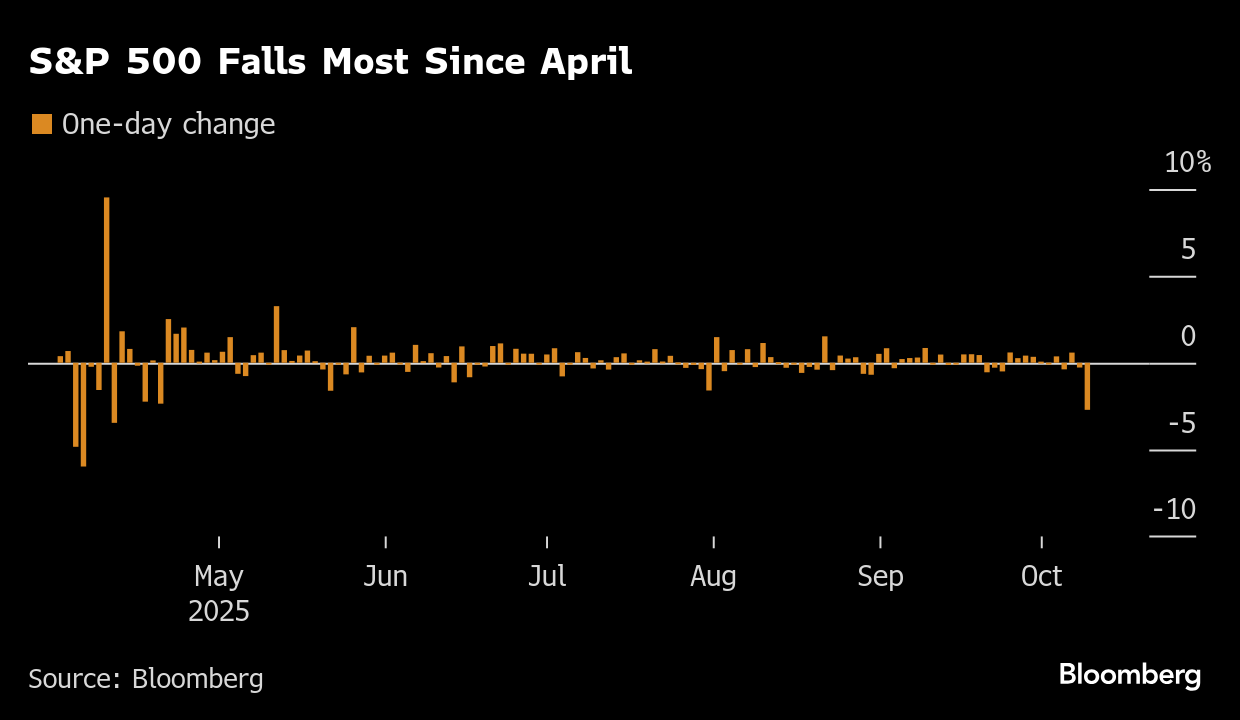 President Donald Trump’s threat of a “massive increase” in China tariffs shook Wall Street at the end of an already-volatile week that saw concern build about a bubble in artificial-intelligence companies. His remarks sent the S&P 500 down 2.7%. The tech-heavy Nasdaq 100 lost 3.5%. The dollar slid at the end of its best week this year. Crude plunged over 4%.