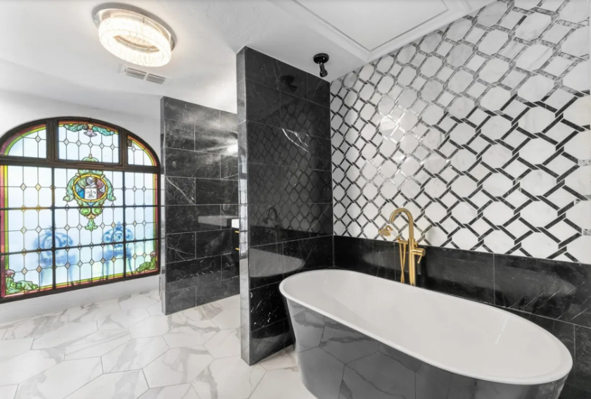 The next significant improvements to the home were done by Michael Fahey, who lived here for 15 years, until 2020. He did tremendous work to the exterior, adding the stone privacy wall, a custom roof, copper gutters, and turret covers. Fahey updated the pool to saltwater and took the gardens to a new level. He restored the corner fountain, brought in new electrical, and added bridges, ponds, sitting areas, a lovely secret garden, and the stone stairs to the pool area.