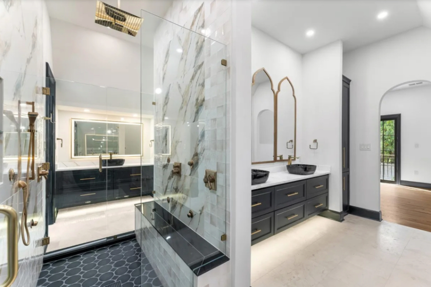 The current owners had Brad Compton add 4,500 square feet, bringing the current total to 7,777 square feet with six bedrooms, four full bathrooms, and two powder baths. Compton repaired the foundation and increased the structural integrity of the home first.