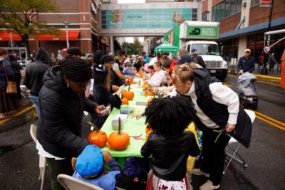 Atlantic Terminal Mall and Brooklyn Bridge Parents hosted a FREE family-friendly fall festival on Atlantic Terminal’s outdoor plaza and car-free Fort Greene Place on Saturday, October 11. We set up an “urban pumpkin patch” with 1,000 pumpkins waiting to be decorated by the kiddos. The outdoor plaza and car-free Fort Greene Place featured arts & crafts, pumpkin painting, haunted truck, costume dance party, Pokemon trading and more!