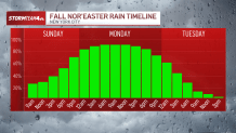 The storm will still be in our vicinity off the coast through early Tuesday. However, by later Tuesday and Wednesday, the weather calms down. Tuesday will be very breezy, but the rain will taper off and we’ll feel the transition to calmer weather as the low pressure system weakens and migrates east.