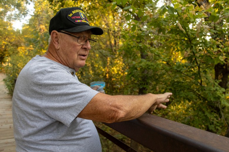 Arlington resident Jim McCollough talks about Rush Creek and its animals in Clarence Foster Park on Oct. 9. (Chris Moss | Arlington Report)