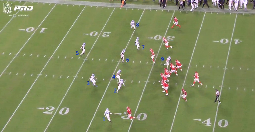 However, the blocking was subpar against the Chiefs. Brock Wright, in particular, seemed to struggle with his assignments and it proved costly at times.