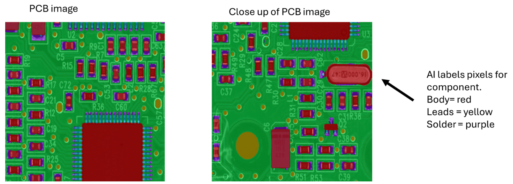 Fig. 1: AOI PCB segmentation using AI to segment/label features in AOI image. Source: Nordson Test and Inspection