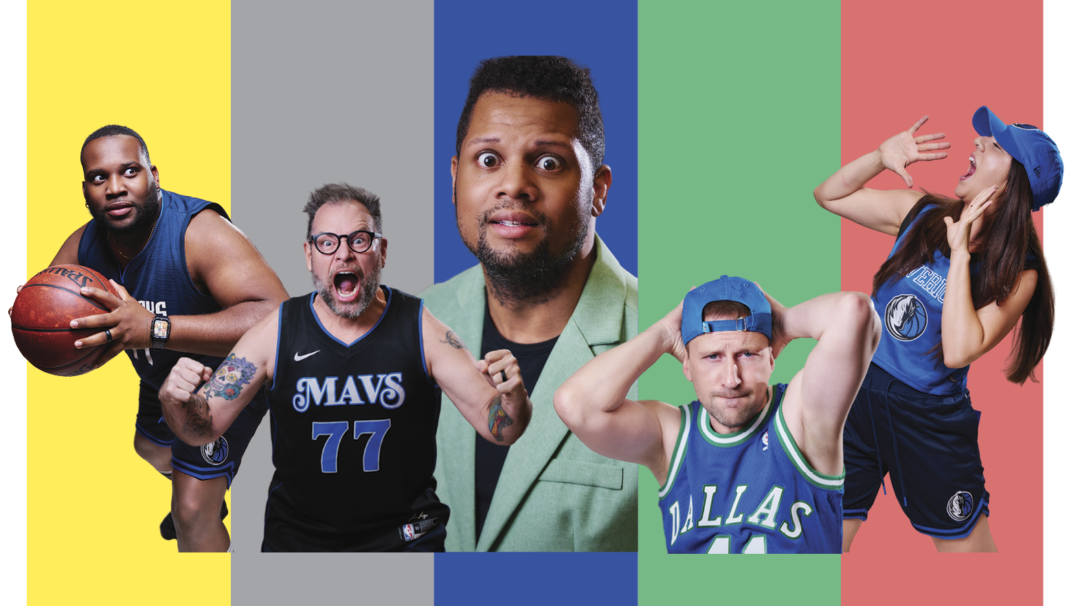 Those moments are found in the farcical margins of a homoerotic conversation between Nico Harrison and Rob Pelinka, or a minutes-long bit about Chandler Parsons, or the entire play’s framing of NBA drama as classical Greek tragedy. But then you look around the room at Theatre Three’s blackbox stage in-the-round, where a makeshift basketball court, concession stand and hoop have been erected for tonight’s proceedings, and you see a room of people howling with laughter. Only a few minutes in, it’s clear that The Trade is one of the greatest productions to ever see the light of day in Dallas.