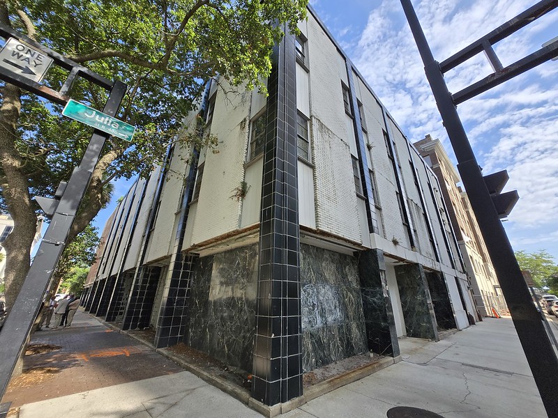 Completed in 1927, 404 Julia St. was originally constructed in the Mediterranean Revival style, characterized by its large arched windows and distinctive clay tile roof.