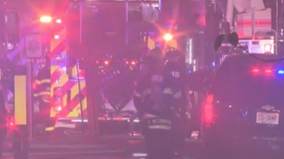 OEM crews are on scene, along with a heavy police presence, as emergency teams continue to battle the multi-alarm blaze and monitor for flare-ups.