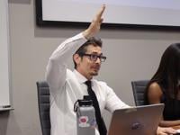 Marcus Otero, chair of the Community Affairs Committee, raises his hand during a Student Senate general body meeting Oct. 14 in the Student Government Chambers. Otero is a senator in the College of Nursing and Health Innovation.