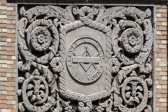 The building opened in 1927 and then the Great Depression hit, membership declined, and the club went into foreclosure. A buyer turned it into a hotel, but the space lost its spark and became an SRO, then a drug-rehab facility (an early location for the groundbreaking Phoenix House) before a developer bought it in 1982. The conversion filled in a pool, tiled in delicate mosaic, with cement and put down cheap carpets and Formica, but by slapping drywall over the old building, it inadvertently preserved some of the detail Schier was able to pull out when he renovated in 2002. And on the façade, stone carvings show Masonic symbols: images of the biblical King Solomon and his architect, the hourglass, the all-seeing eye, and the classic compass.