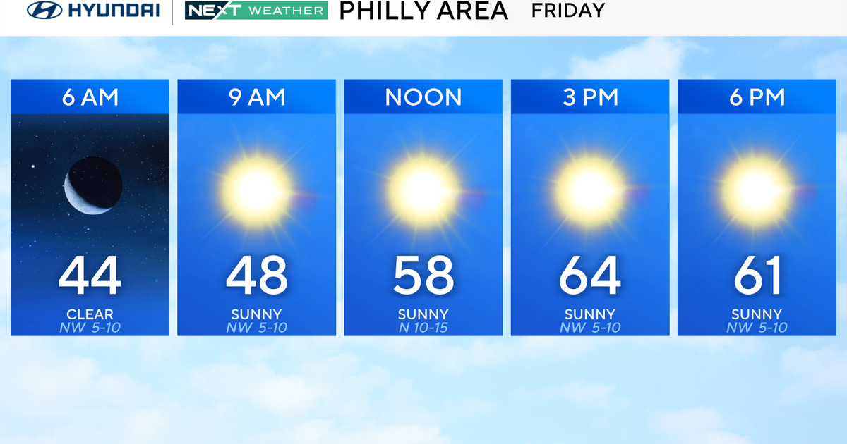 Friday in the Philadelphia region will be similar to Thursday, but it will be just a bit colder to start the day.