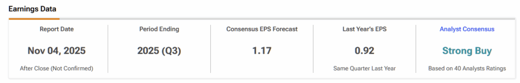 The recent 50% spike in AMD’s share price has taken the stock into overpriced territory. Shares seem too expensive at a forward P/E of 95x, which is more than double Nvidia’s 41x. Given the small challenger’s history of wild price swings, AMD stock could see weakness around November 4th if its Q3 2025 earnings report disappoints.