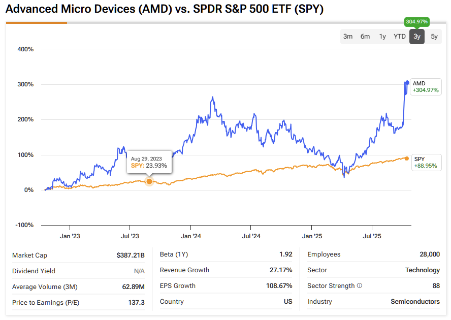 Advanced Micro Devices’ (AMD) aggressive push into the artificial intelligence (AI) market has reached epic levels. In a direct challenge to Nvidia’s (NVDA) undisputed dominance in the AI accelerator market, AMD has unveiled two blockbuster deals in October that signal its ambition to become a formidable competitor.