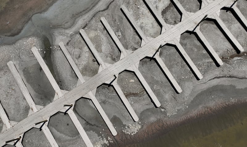 Boat docks are dried up and unusable at the Antelope Island Marina on Tuesday, July 29, 2025. Water levels in the Great Salt Lake are low during a sustained drought. | Kristin Murphy, Deseret News