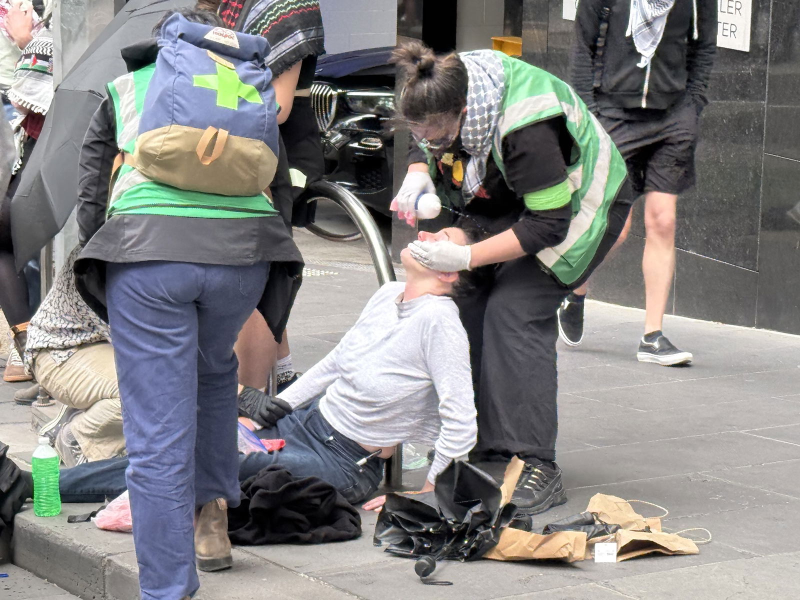 OC spray was then deployed, with several protesters being affected. Others used umbrellas to block the spray, screaming “shame” at the officers.