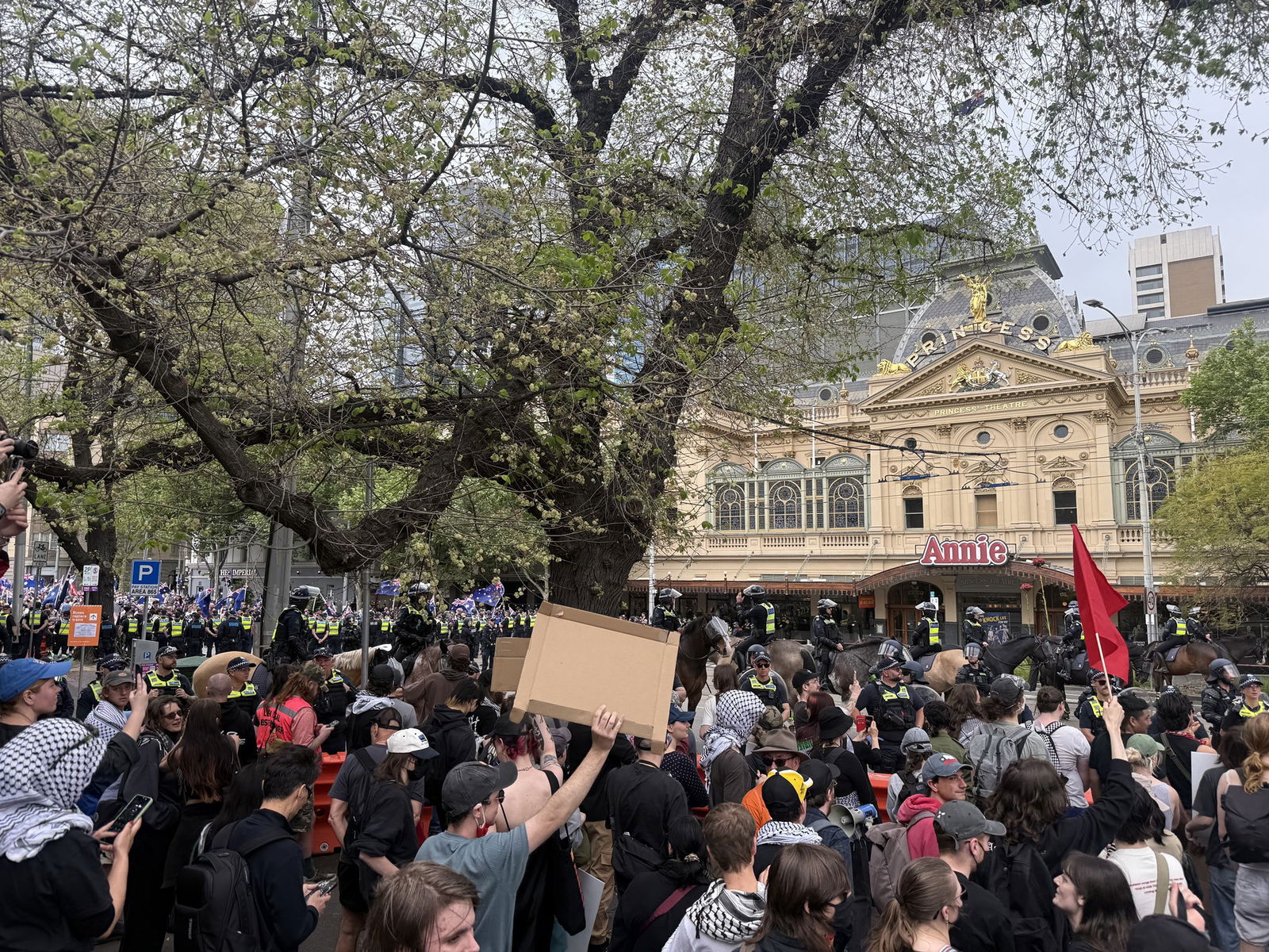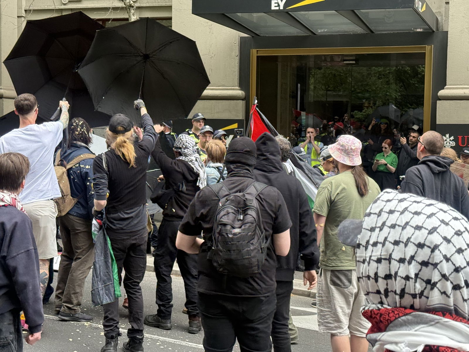 Tensions are flaring in Melbourne’s CBD, where protesters attending an anti-racism rally have clashed with police.