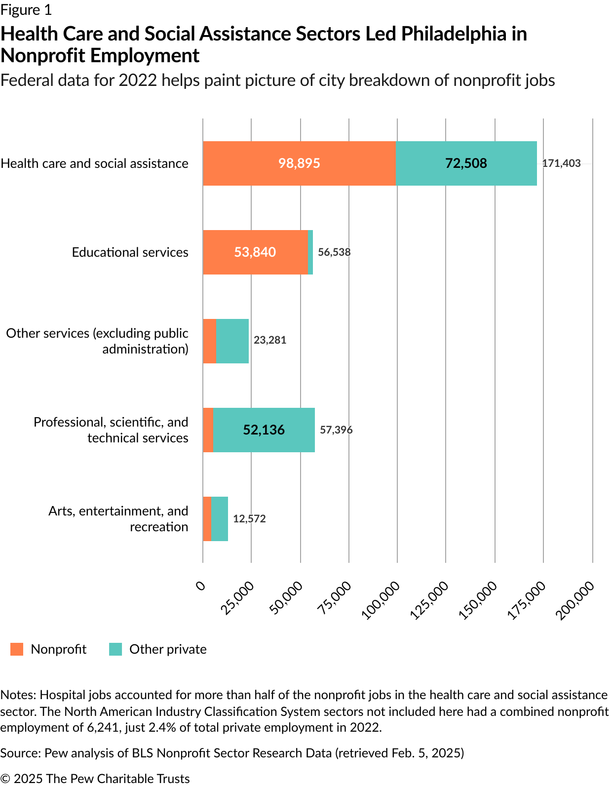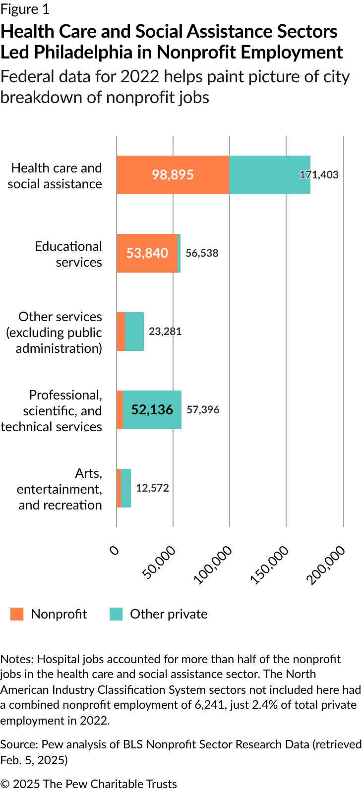Nonprofit organizations play a critical role in Philadelphia and represent a major source of area employment. They accounted for 30% of the city’s private sector jobs in 2022, according to federal data.