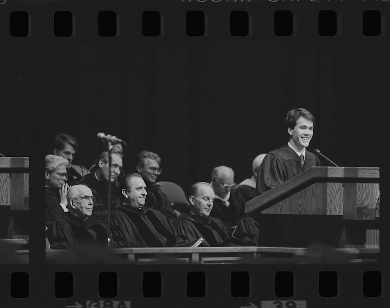 A young Bob Carter speaks for the Class of 1986 during a BYU graduation ceremony. | Carter family photo
