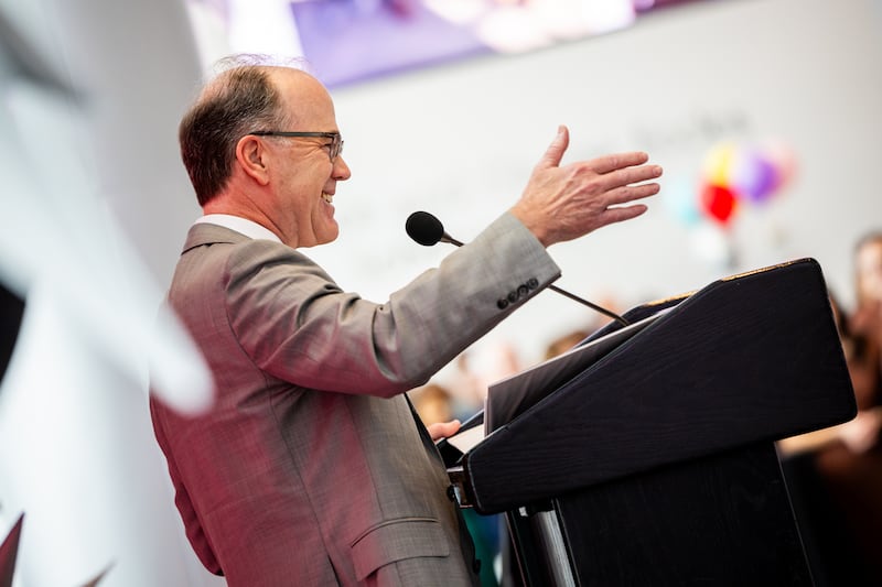 CEO of University of Utah Health Bob Carter addresses University of Utah School of Medicine students before they open their match envelopes to find out where they will live and work for the next few years while completing their residencies, at the University of Utah Rice-Eccles Stadium in Salt Lake City on Friday, March 21, 2025. | Tess Crowley, Deseret News
