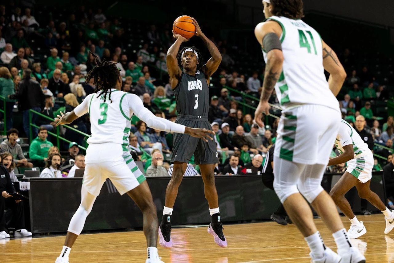 AJ Brown (3) was a volume 3-point shooter at Ohio U, where he hit 37.7% from deep over his three seasons.