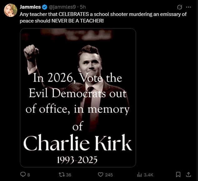 Another fumed: ‘Any teacher that CELEBRATES a school shooter murdering an emissary of peace should NEVER BE A TEACHER!’