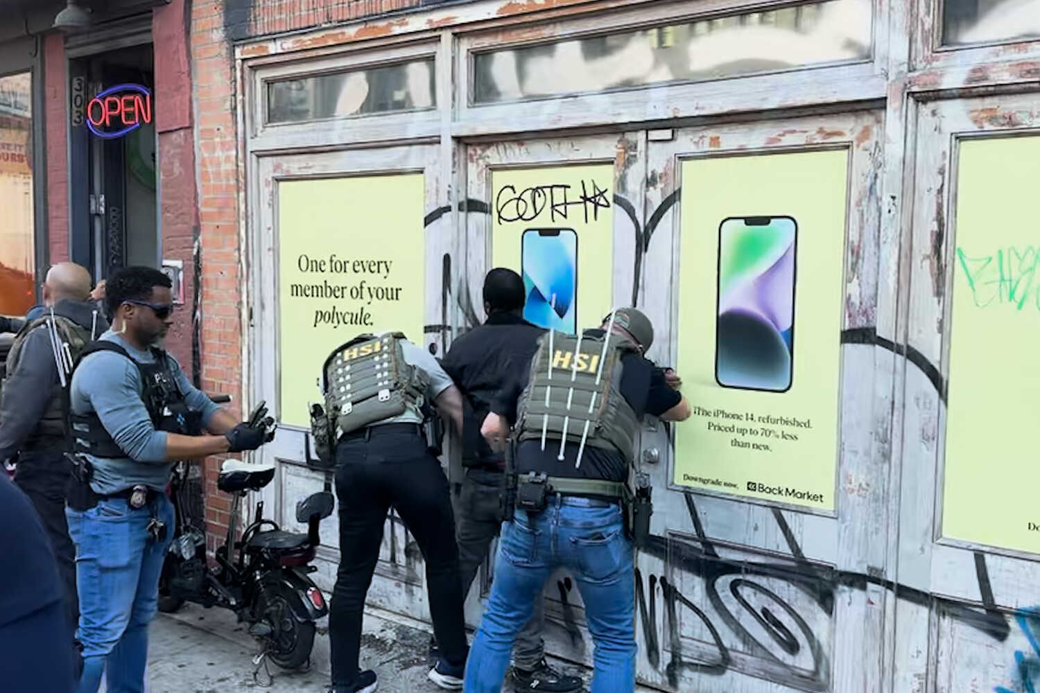 Federal Agents Detain Man During New York City RaidMasked federal agents detained a man in Lower Manhattan on Tuesday, handcuffing him while he faced the wall of a building.