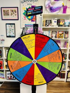 Kids who enjoy grabbing a book off the shelves and getting lost in the pages will find lots of comfy seating options, while little ones who are a little “busier” can grab a book off the doll house bookshelf or spin the “Which Book Genre Matches Your Personality” wheel. I’ve never seen anything like this before; my kids love personality quizzes, so this was a fun surprise.