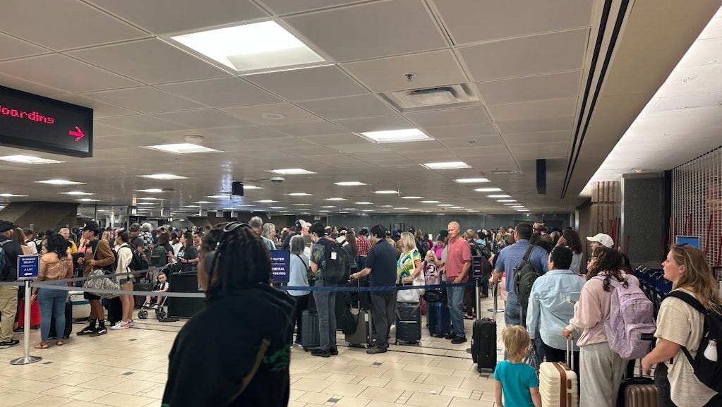 Travelers took to social media July 9 to report warm temperatures inside the airport, and news coverage from other outlets reported travelers fanning themselves.