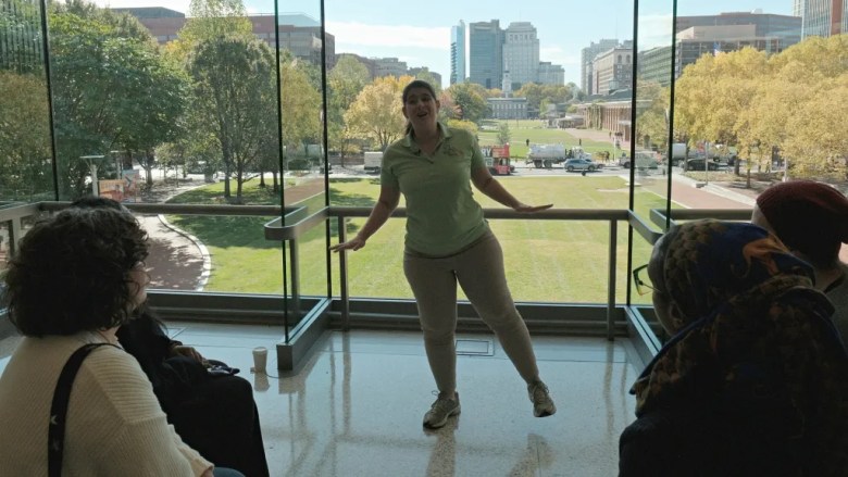 Samantha Ricchiuti, a Once Upon A Nation Storyteller, recounts the tale of the first hot air balloon in Philadelphia. (Ben Benett/Billy Penn)