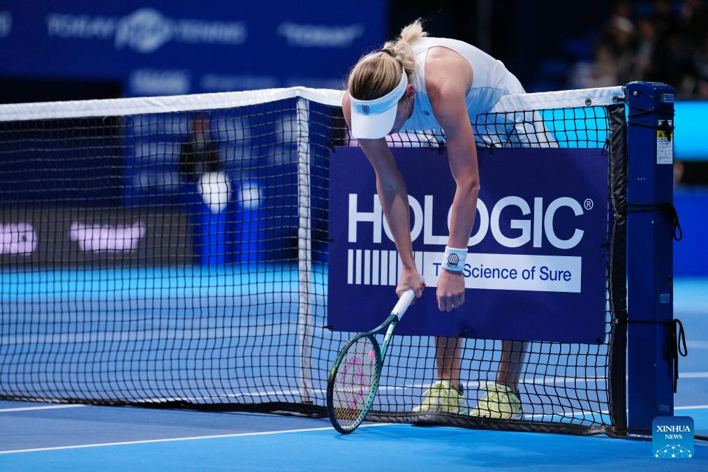 Ekaterina Alexandrova reacts during the women’s singles quarterfinal match between Sofia Kenin of the United States and Ekaterina Alexandrova of Russia at the Pan Pacific Open tennis tournament in Tokyo, Japan, on Oct. 24, 2025. (Xinhua/Jia Haocheng)