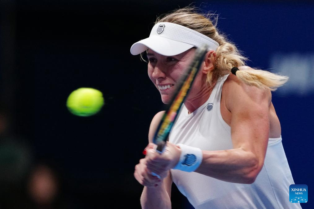 Sofia Kenin hits a return during the women’s singles quarterfinal match between Sofia Kenin of the United States and Ekaterina Alexandrova of Russia at the Pan Pacific Open tennis tournament in Tokyo, Japan, on Oct. 24, 2025. (Xinhua/Jia Haocheng)