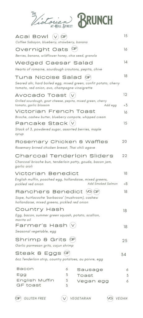 Menu image for The Victorian at Hill Street. (Photo courtesy of The Victorian at Hill Street)