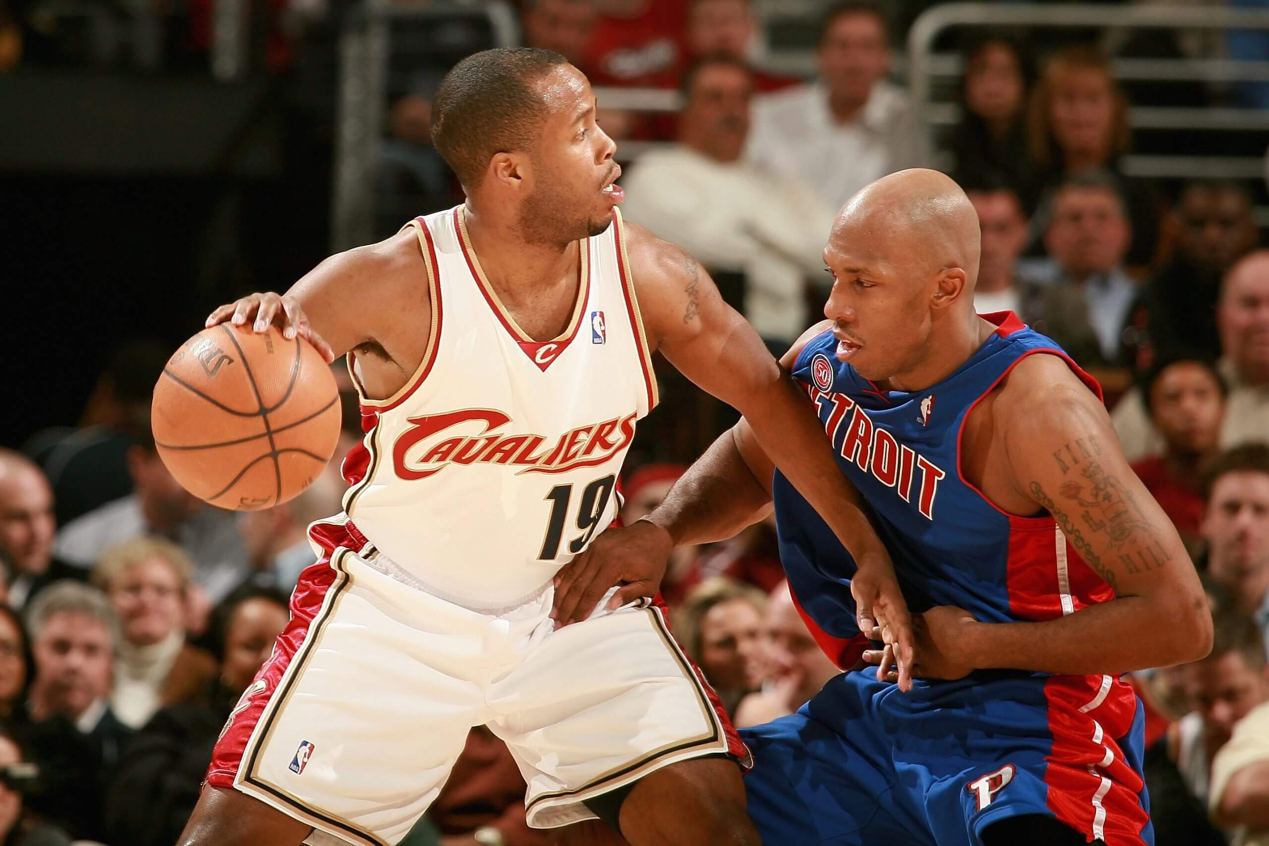 Damon Jones, left, battles Chauncey Billups in a March 2008 game between the Cavs and Pistons. Now both former players have been indicted by the federal government as part of an illegal gambling investigation. (Nathaniel S. Butler / NBAE via Getty Images)