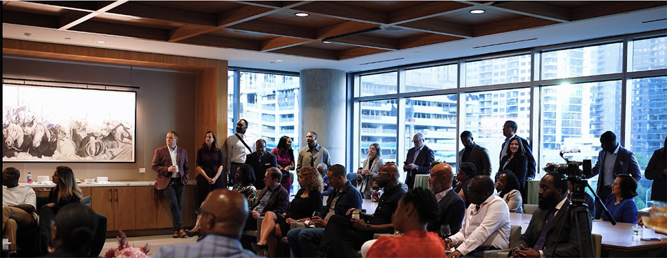Guests connect during the kickoff of the 2025 Inclusive Capital Summit at JPMorgan Chase. [Image: Screenshot / The Shearer Group video]
